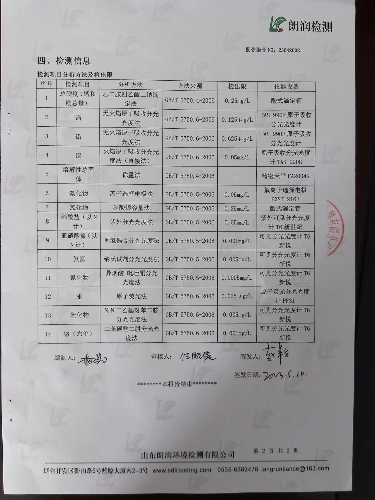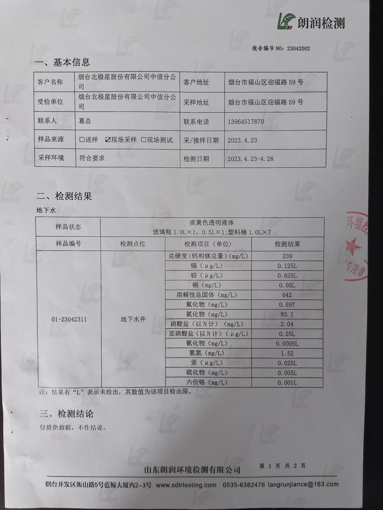 煙臺北極星工業(yè)園地下水檢測報告2023年5月